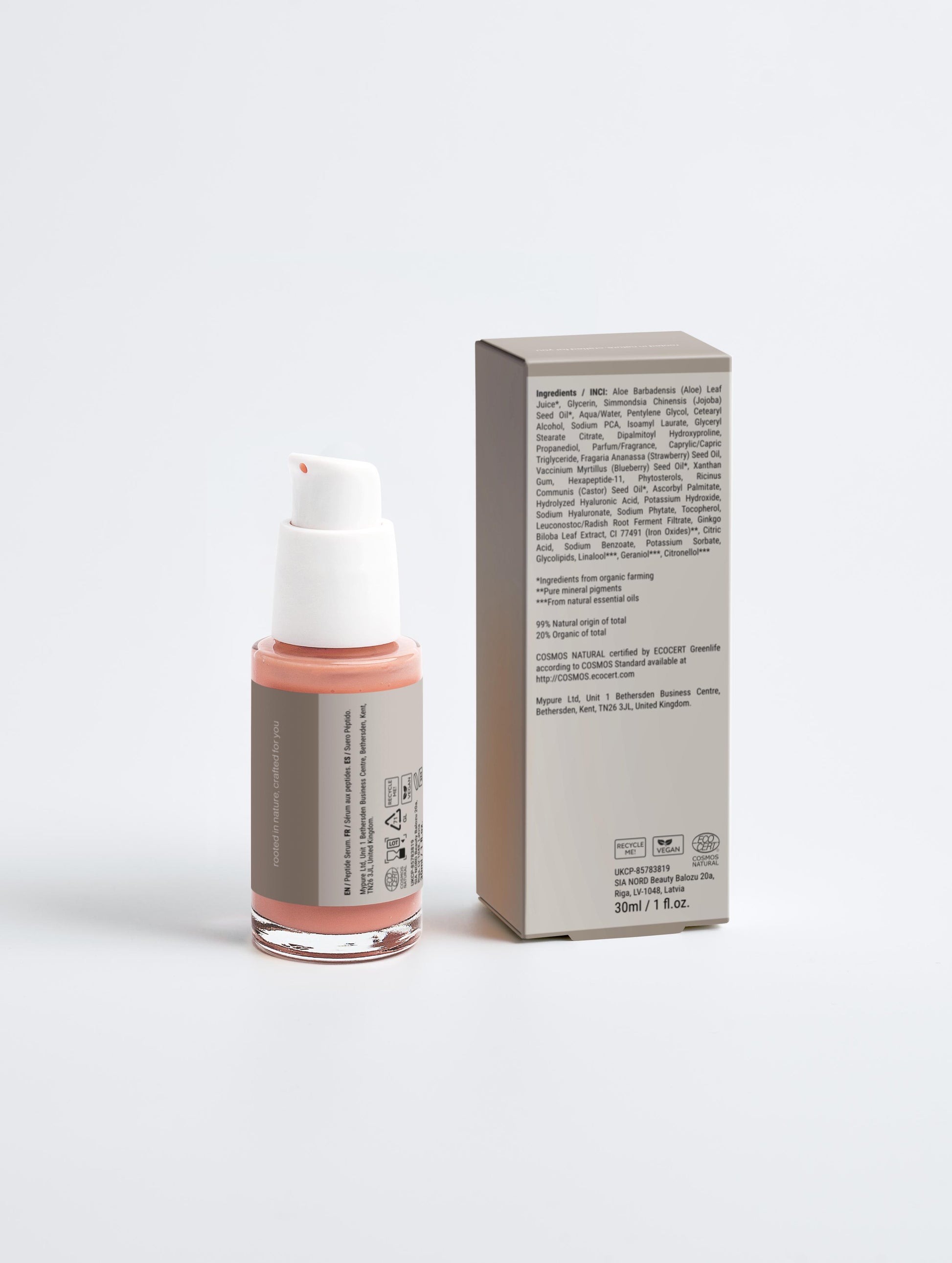 Ingredients: Peptides (Active ingredients), Hyaluronic Acid (Active ingredients), Aloe Juice (Active ingredients), Sodium PCA (Active ingredients), White (Packaging color), Transparent (Packaging color) Hydroxyproline (Peptide), Peptide, Phytosterols, Aloe Juice, Sodium PCA, Hyaluronic Acid, Strawberry Seed oil, Blueberry Seed oil, Ginkgo Leaf Extract Hydroxyproline (Peptide), Peptide, Phytosterols, Aloe Juice, Sodium PCA, Hyaluronic Acid, Strawberry Seed oil, Blueberry Seed oil, Ginkgo Leaf Extract Aloe Barbadensis (Aloe) Leaf Juice➀, Glycerin, Simmondsia Chinensis (Jojoba) Seed Oil➀, Aqua/Water, Pentylene Glycol, Cetearyl Alcohol, Sodium PCA, Isoamyl Laurate, Glyceryl Stearate Citrate, Dipalmitoyl Hydroxyproline, Propanediol, Parfum/Fragrance, Caprylic/Capric Triglyceride, Fragaria Ananassa (Strawberry) Seed Oil, Vaccinium Myrtillus (Blueberry) Seed Oil➀, Xanthan Gum, Hexapeptide-11, Phytosterols, Ricinus Communis (Castor) Seed Oil➀, Ascorbyl Palmitate, Hydrolyzed Hyaluronic Acid, Potassium Hydroxide, Sodium Hyaluronate, Sodium Phytate, Tocopherol, Leuconostoc/Radish Root Ferment Filtrate, Ginkgo Biloba Leaf Extract, CI 77491 (Iron Oxides)➁, Citric Acid, Sodium Benzoate, Potassium Sorbate, Glycolipids, Linalool➂, Geraniol➂, Citronellol➂